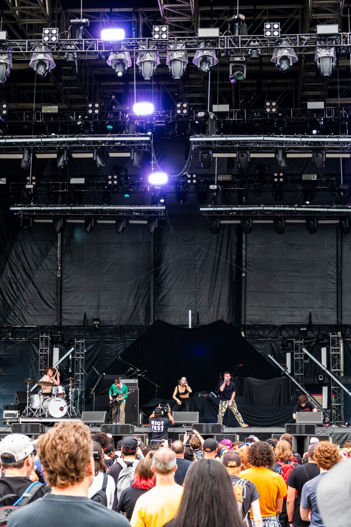 EG: We’ve only ever played Chicago but we’ve been in a few states… Chicago is a part of the band’s history; it was a real milestone for us. We played Riot Fest last year after opening for Viagra Boys in The Metro the night before. Both shows were class craic, sharing the stage with Death Grips and Queens of the Stone Age felt like such a power move for our debut. We’ve been massive fans of Jehnny Beth and her previous band Savages for years so about 20mins before we went on we asked her to join us on stage to sing Scrappers without hesitation she said “fuck yeah”. That was one of those ‘once in a lifetime moments’ which we’ve actually been able to do twice since and probably will whenever our paths cross again