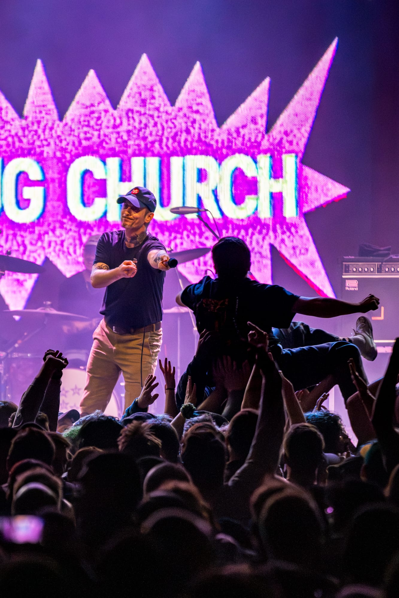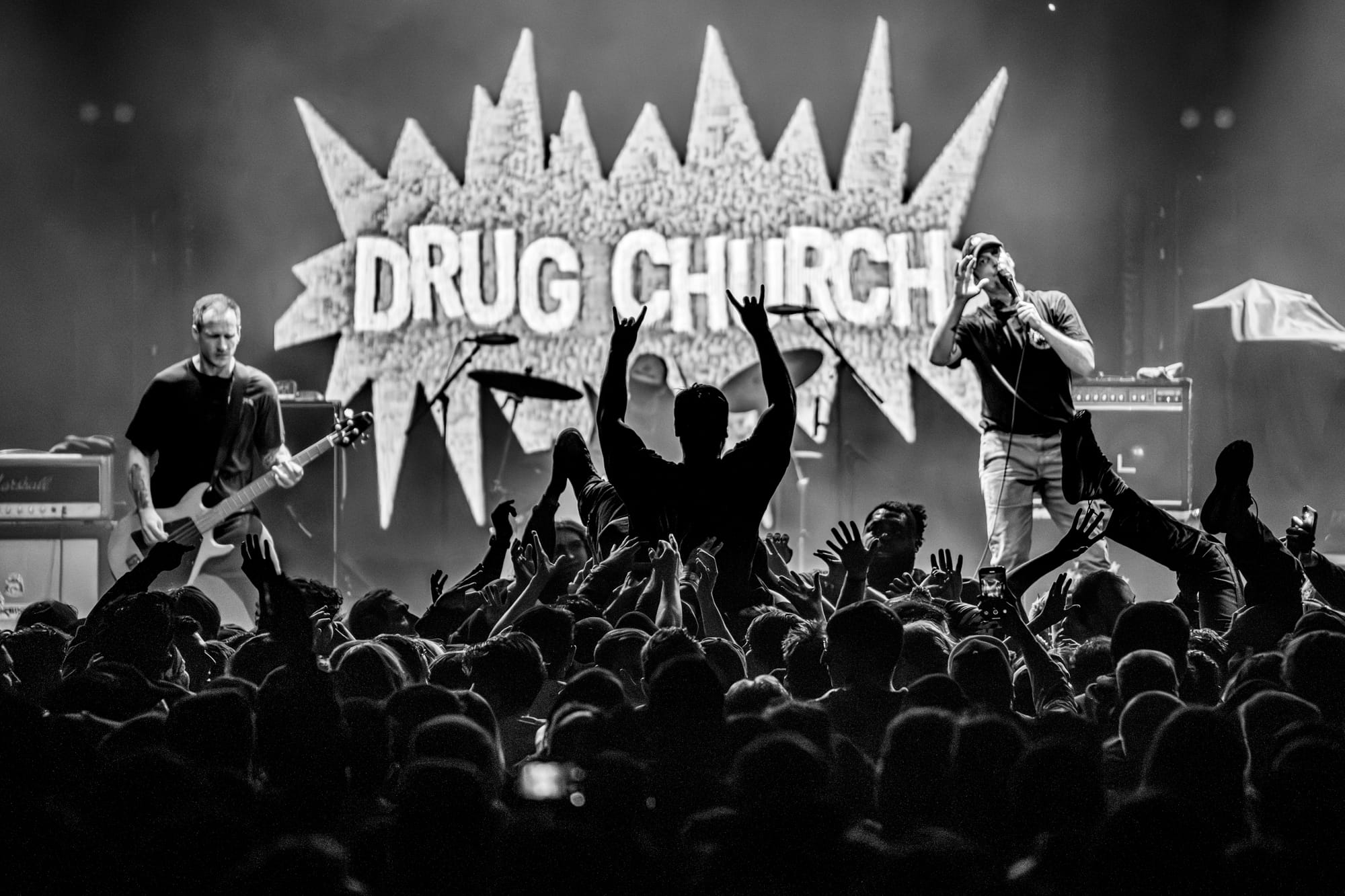 DRUG CHURCH. DRUGGG CHURRRCH. There are certain bands that rock and then there are bands that rock so hard that you have to refer to them in all caps and after experiencing their punishing live show for the second time, there's no doubt they are that kind of band. It's not necessarily a volume thing, although they are loud. It's not only about being active onstage, even though they bounce off of every surface they come into contact with. It's just one of those things you know when you see, and with DRUG CHURCH, I knew it about the time I saw the 10th body or so crowdsurf its way over the barricade, which came approximately 30 seconds deep into 'Grubby' to kick off an electric 11 song set.