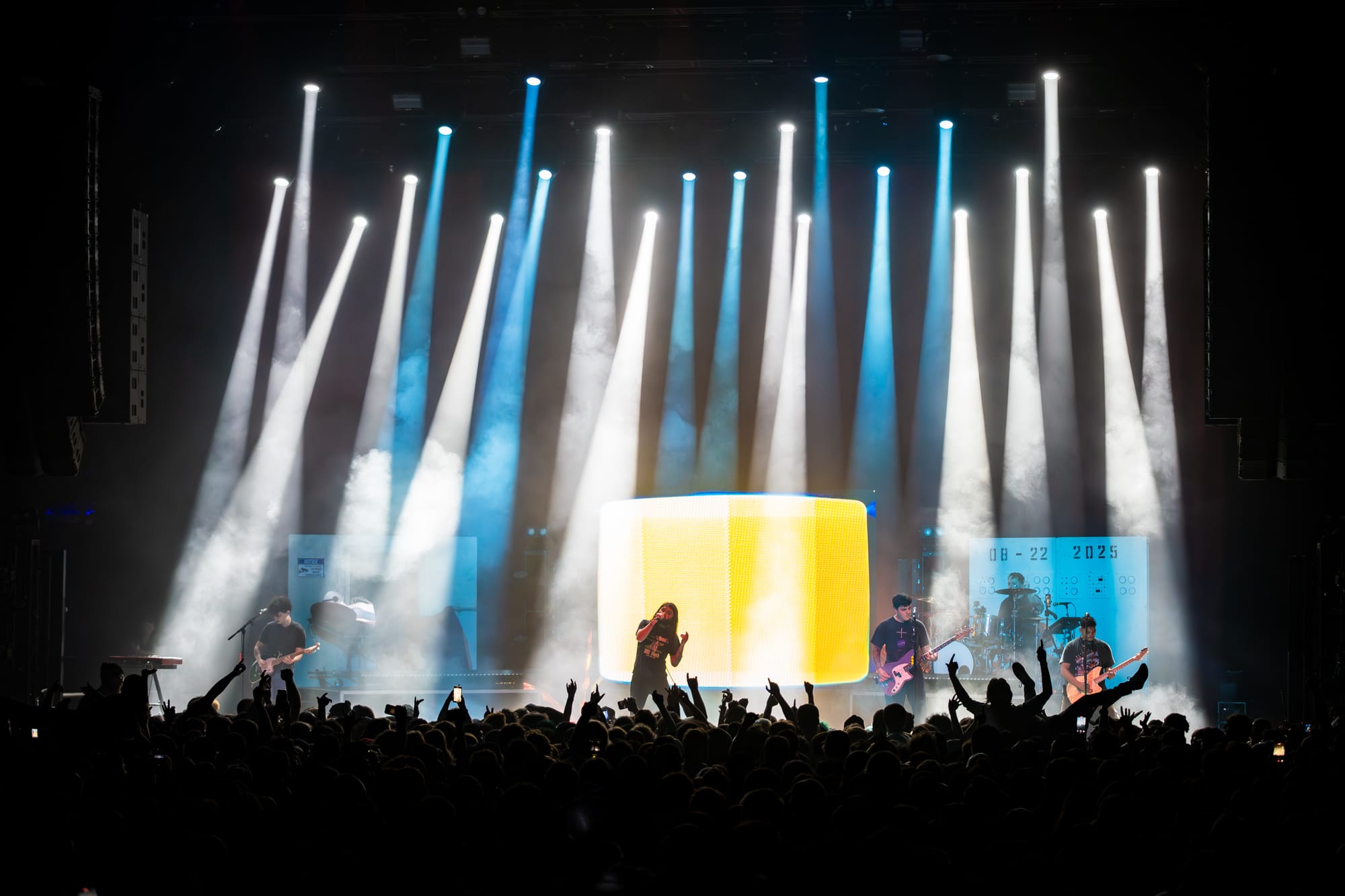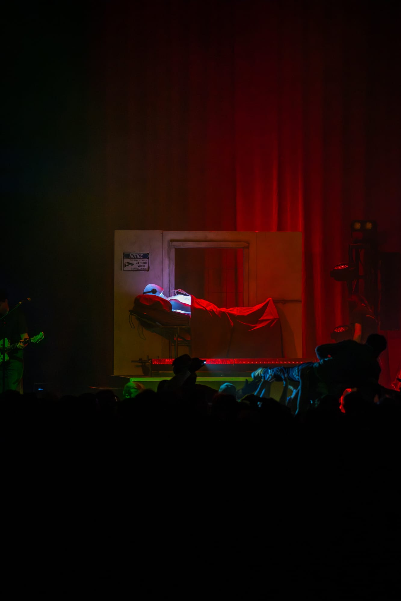 Like I mentioned at the top, Hot Mulligan is a band of contrasts, playing up emotions and dressing up those songs with dick and fart jokes. Sanville is anti-capitalist, but the band put a good amount of money into a bunch of AI generated animations to be shown behind their performance. Cutting edge technology, but used to show videos of everything from armadillos wandering the desert to an infinite trip down some kind of wormhole that looks a lot like a colonoscopy.