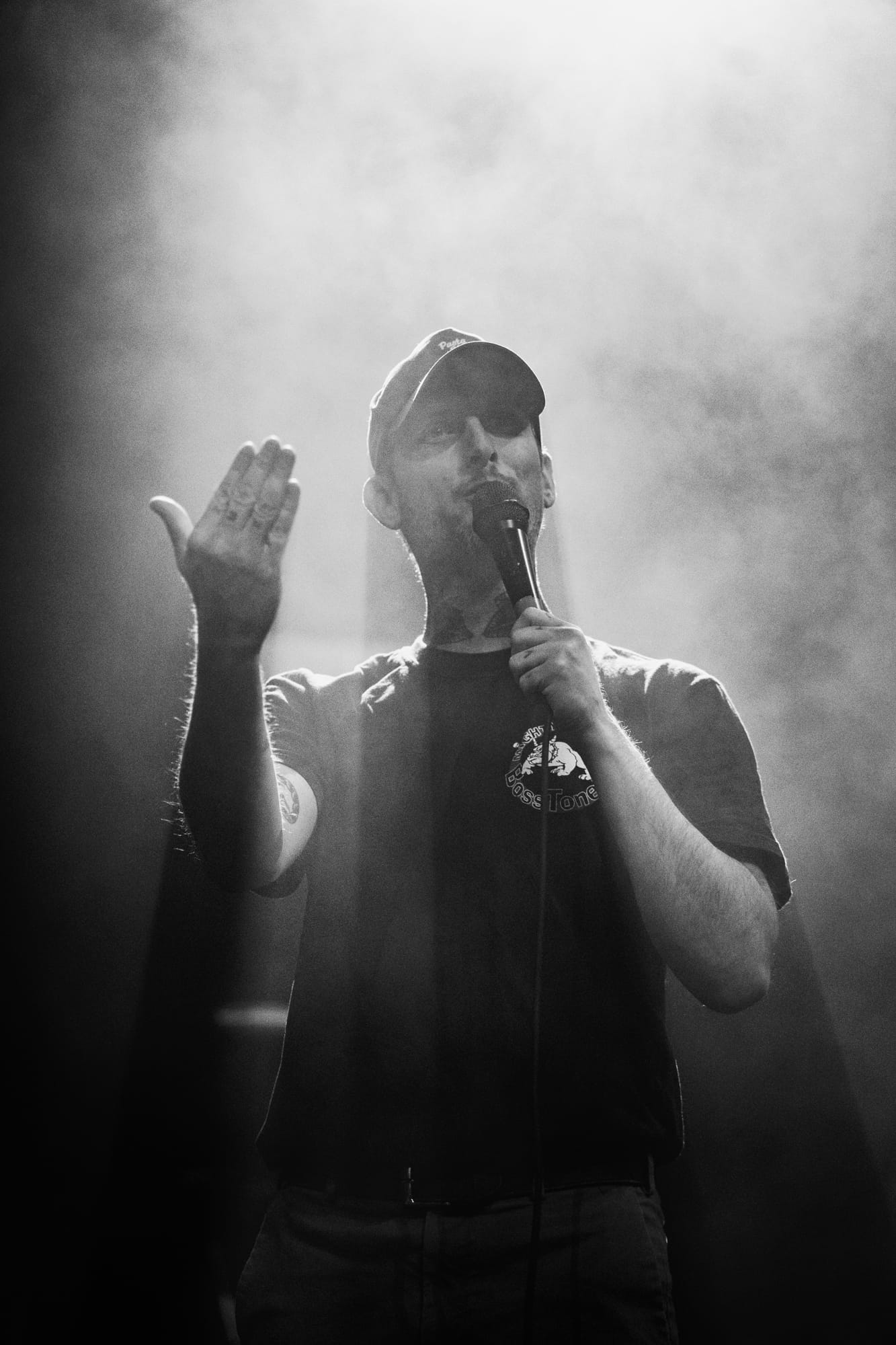 That's what constitutes holiday cheer from Hot Mulligan frontman Tades Sanville. Holding court between songs on the subject of working during the holiday season, Sanville had some choice (if unsurprising) advice on how to deal with employers that don't treat their workers right. But to be fair, it's not like we didn't have any warning. Just a few songs beforehand, Sanville literally announced "This is the part of the show that is very anti-religion and anti-capitalism!" before launching into 'Shouldn’t Have a Leg Hole but I Do'.