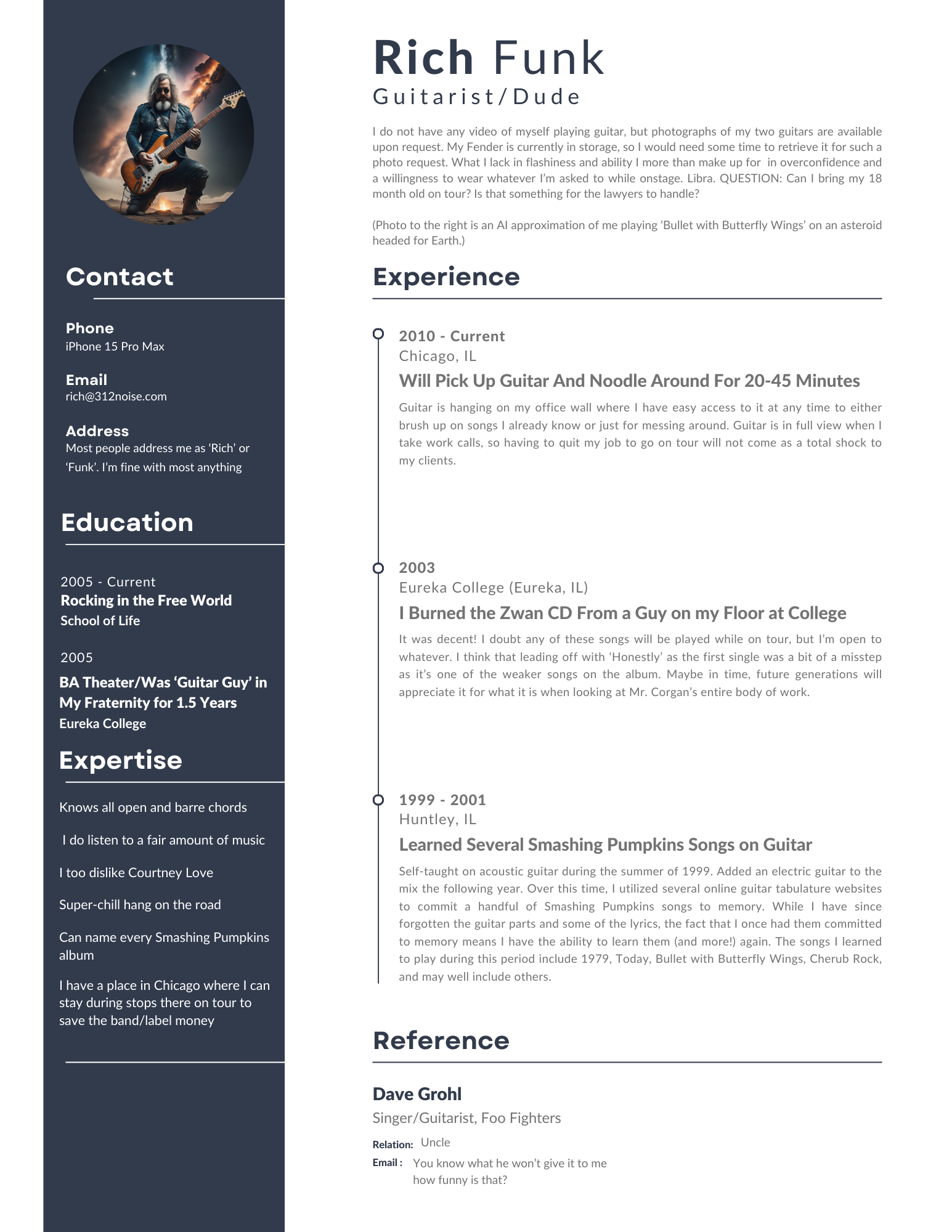 So you might be asking yourself how I put together an entire resume to send over to the Pumpkins' management. The same way I wrote the majority of my papers in college: total bullshit!
