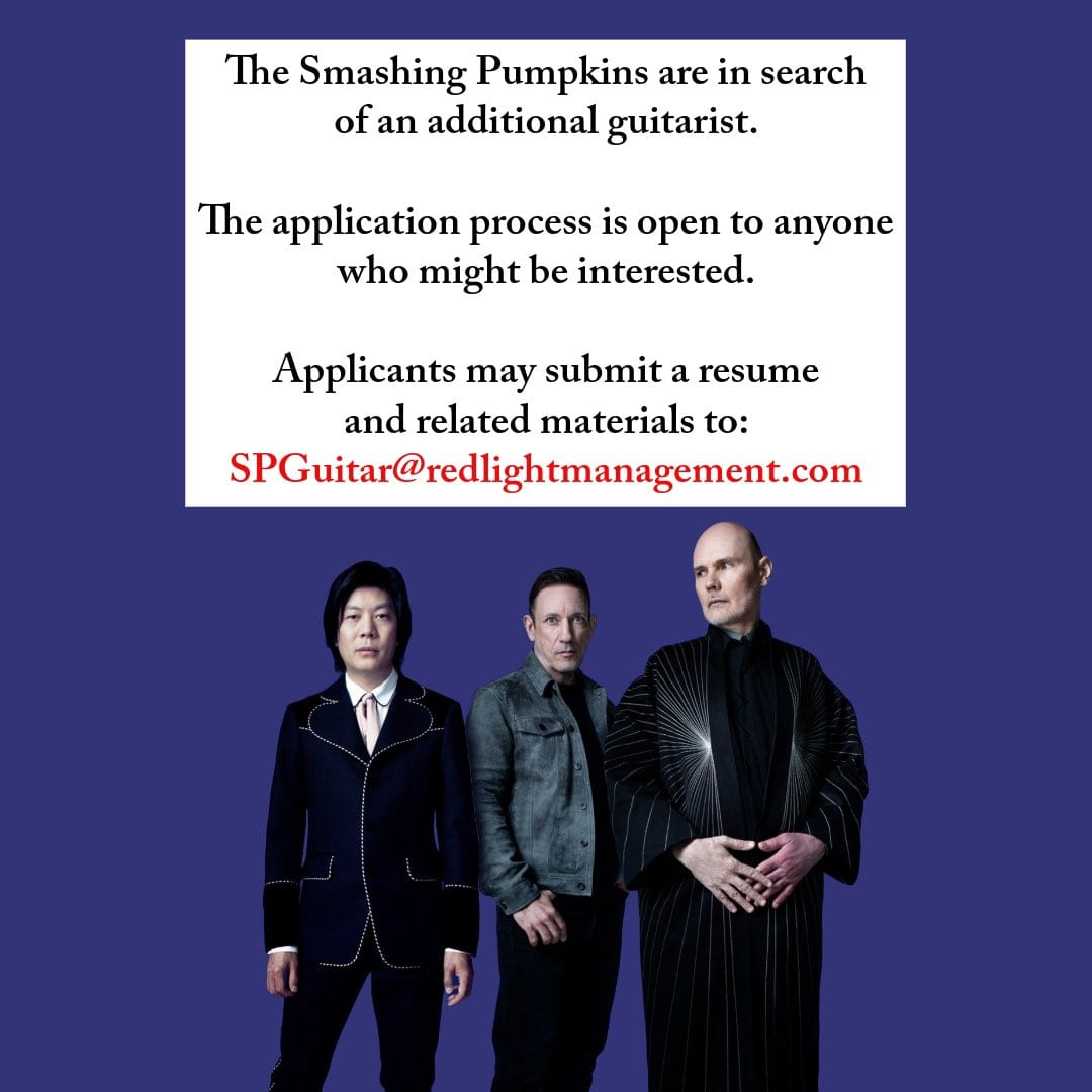 Late last week, the Smashing Pumpkins put up a want ad for a new guitarist to accompany them on their massive tour next year with Green Day and Rancid.