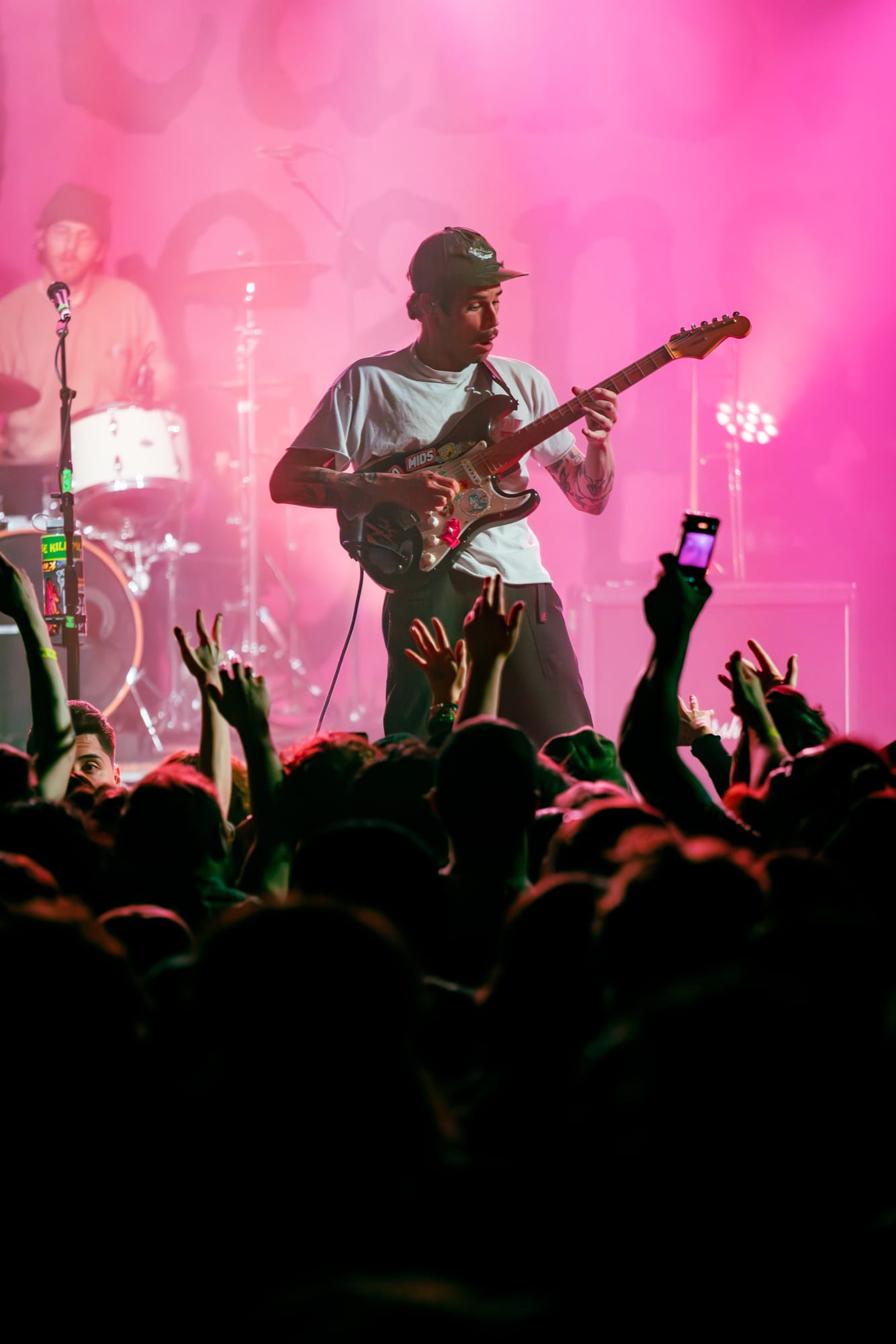 Funny thing is, the exact opposite is the case when it comes to the vibe of a Mom Jeans show as the band hits the stage (although the thought of a bunch of sad millennials shoegazing and moping about while wearing bright orange camouflage is actually very funny to me). From the beginning notes of 'What's Up?' and steamrolling through songs like 'Something Sweet', 'Hippo in the Water' and 'White Trash Millionaire', the energy both onstage and off was absolutely wild. If the band jumped around onstage, the crowd tried to jump higher. When Eric Butler would get around to any of the countless singalong choruses the band has to their name, the audience would try and drown him out, all while crowd surfing and circle-pitting at levels rivaling a basement hardcore show.