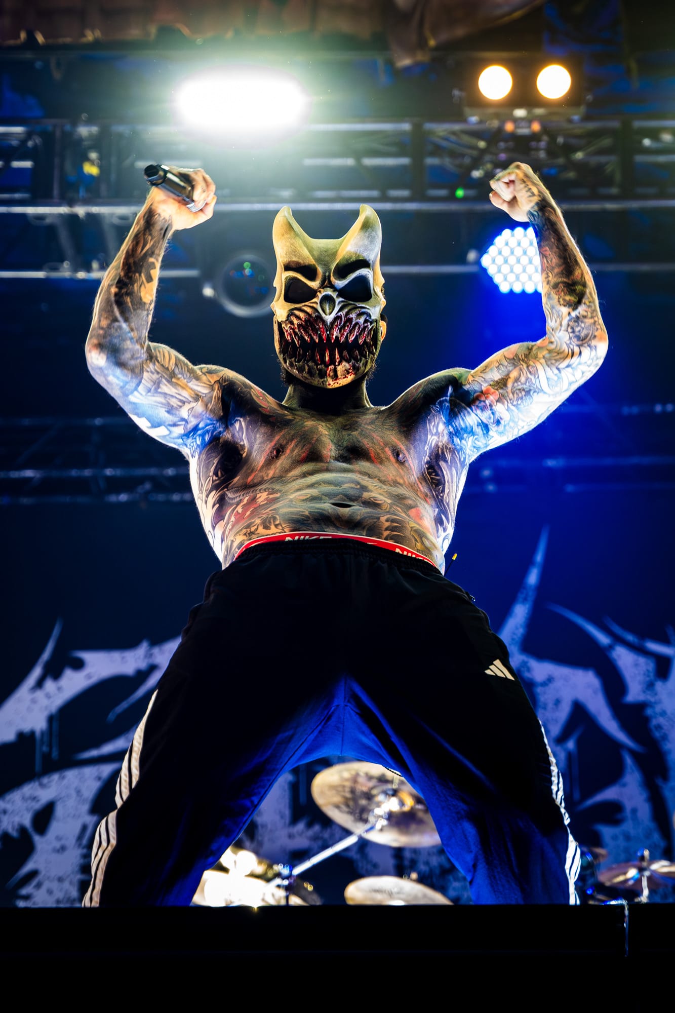 The good news for Atilla is that all it takes is one song to absolutely put any concerns about their legitimacy to rest. Frontman Chris Fronzak, masked like he was about to rob my house in 1998, effortlessly launched the band into 'CONCRETE THRONE', giving the capacity crowd absolutely no warm-up or warning for what their bodies were about to go through over the next 8 songs. The band immediately launched into 'Moshpit', but the crowd didn't need any kind of hint to open that kind of craziness up. The energy was already high throughout the set, but 'Middle Fingers Up' sent the place into a frenzy for reasons I probably don't have to explain. It's fun enough to rage and throw up the bird under the best of circumstances. Considering the state of the world right now, doing it as enthusiastically as possible with 4,000 other screaming fans and the loudest PA system in the city at your back? You can't get better therapy than that.