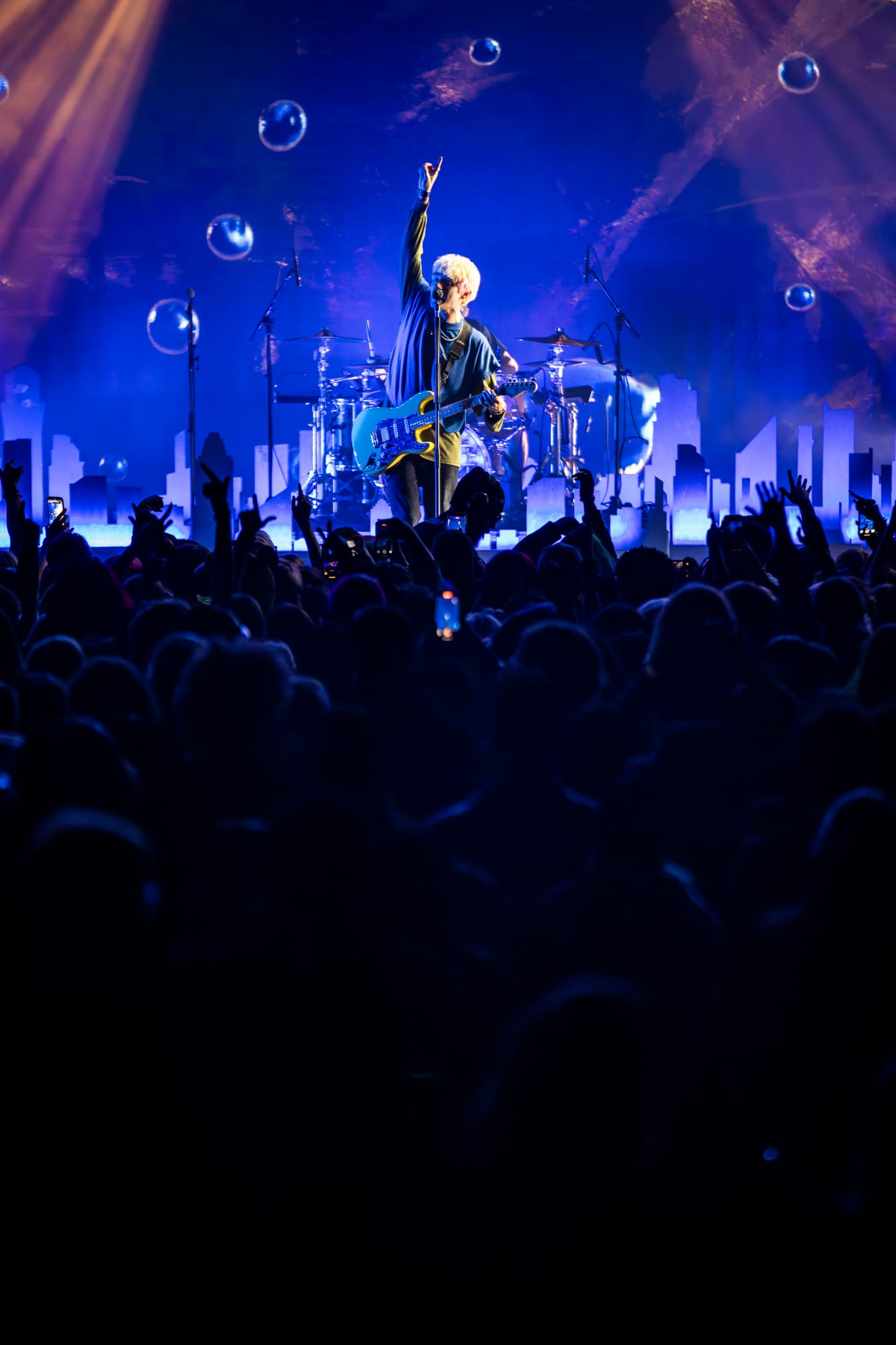 The band hit the stage with the high-powered opening 1-2-3 combination of 'Blonde'/'SNEAKING OUT OF HEAVEN'/'FUCK ABOUT IT' and set the bar as high as any other Waterparks show you've ever seen. And then things started to get both reflective and interactive, with the rest of the set being broken up into smaller chapters. Each chapter had a theme (Happiness, Sadness, Anticipation, Anger) and had songs that fit that specific feeling (like ''Stupid For You' and 'Dream Boy' in the Happiness section, 'High Definition' and 'Crybaby' for the Sadness section, etc). These are the types of things bands can mess around with when they aren't touring on a new album that they feel beholden to playing most of. They even had fans pick between two songs every once in a while to add a little spontaneity.