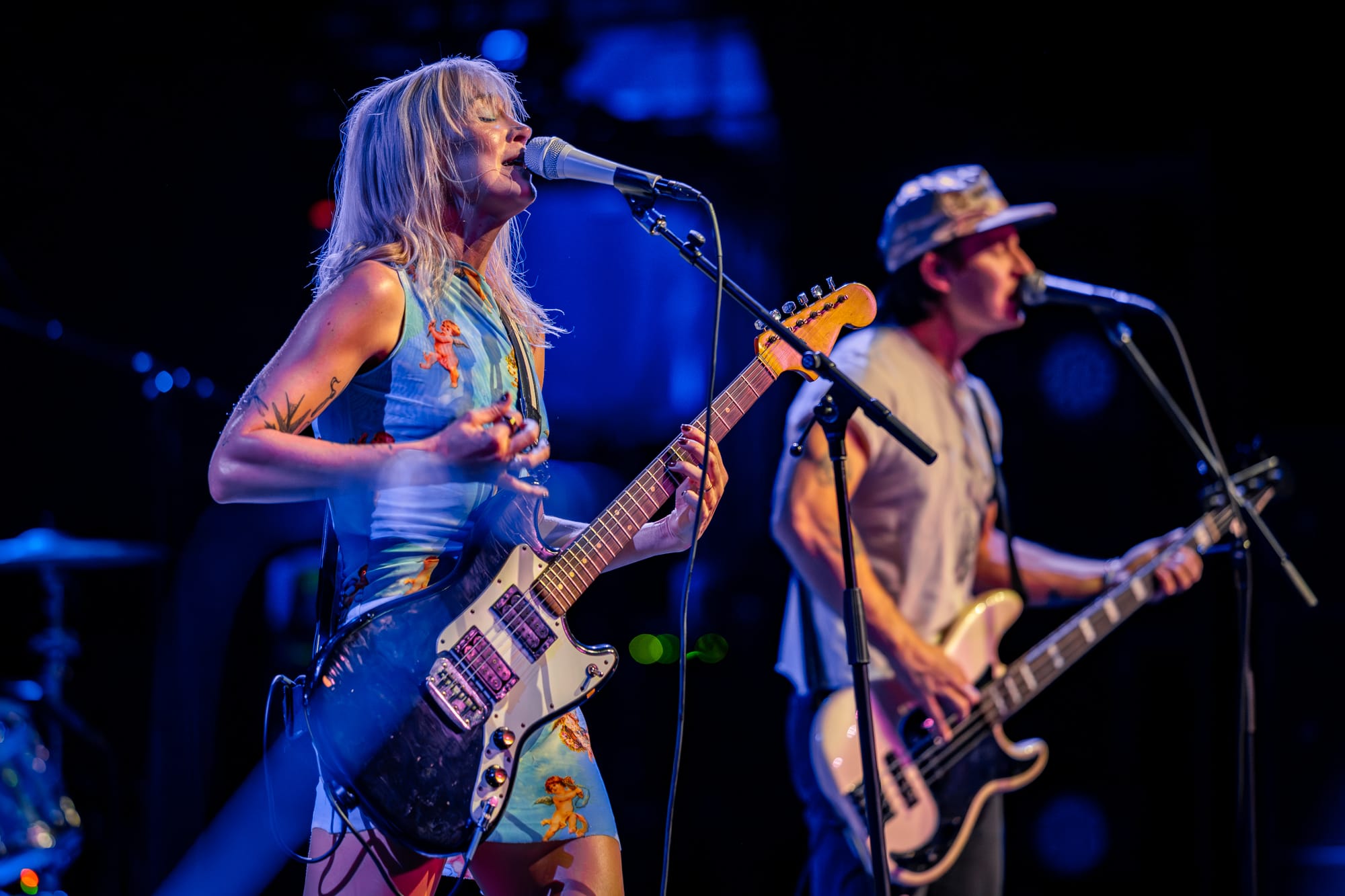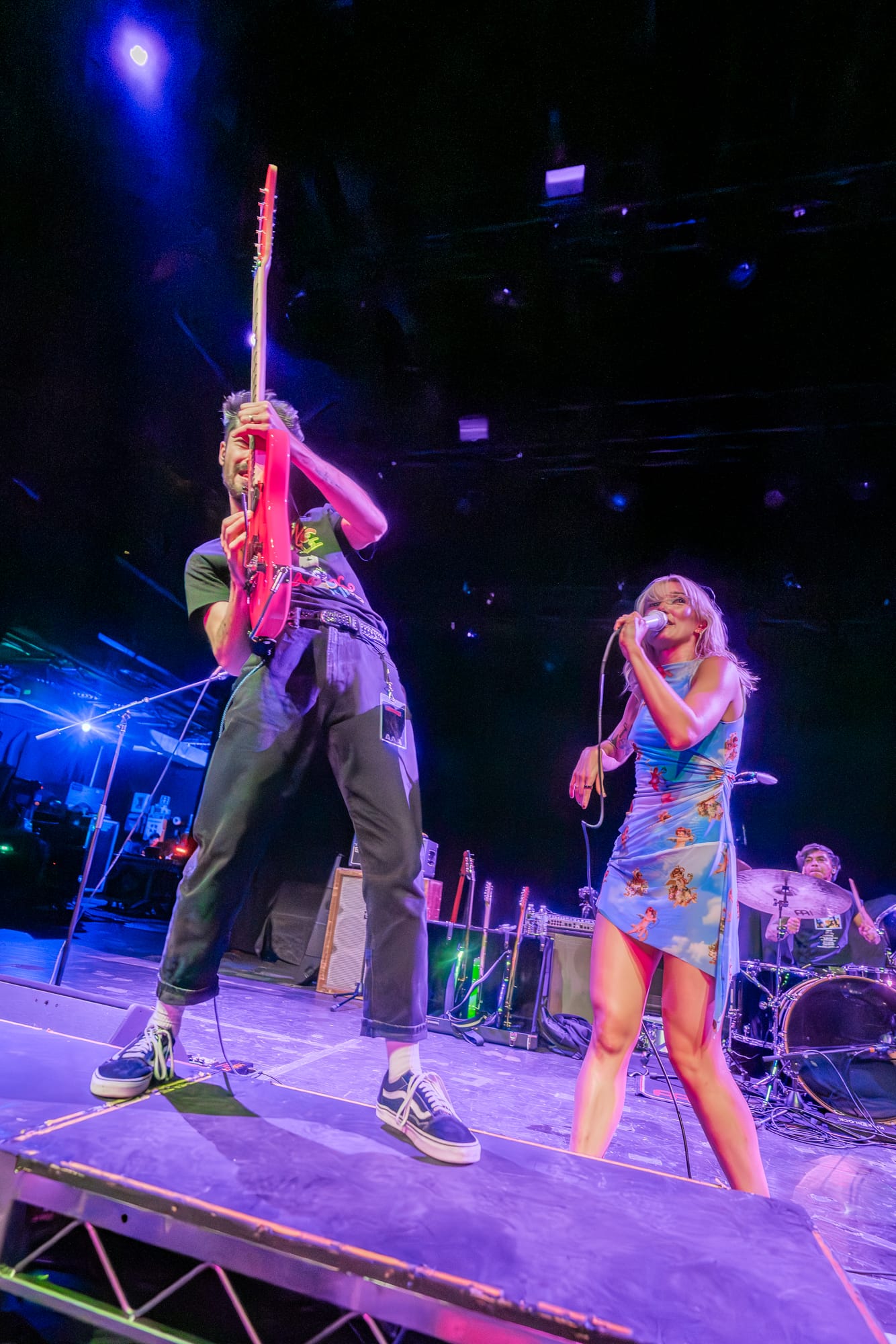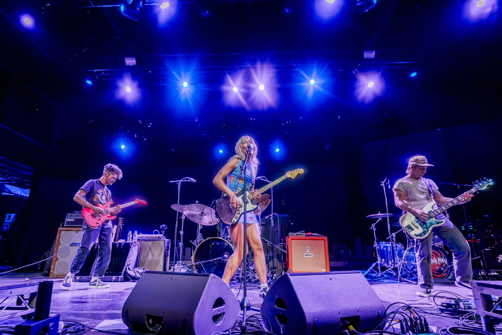 Tearing through exactly half of My Apologies to the Chef (which will absolutely be appearing here again in the next week or so as I name my favorite albums of 2025), it's almost impossible to take your eyes off lead singer Coco Kinnon as she stomps, body slams, spins, jumps, shreds on guitar, and is essentially a one-woman musical tornado from beginning to end of the set. And while she rightfully gets a lot of the focus, these songs wouldn't punch nearly as hard as they do (and they really do) without Dan Fuson's guitar mastery. How much of his ability to rip through insane crunchy riffs like it's no big deal whatsoever is derived from his hot pink guitar? I don't know, and to be honest with you, why even take the chance to find out? That's like telling Picasso to switch brushes mid-painting or asking Jesus to switch to a different non-pink guitar. And when he's not busy balancing a bass above his head on one hand MID SONG, bassist Austin Luther low-key ties every single song together with his bass playing (which is quite a feat considering most Winona Fighter songs feel like slam dancing in the middle of a hurricane so keeping them pulled together and moving in one direction sounds near-impossible).